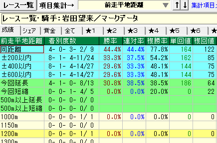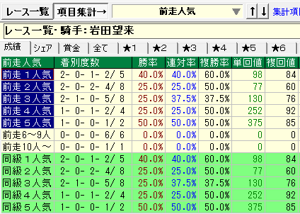 3. 岩田望来騎手⇒①前走1~5番人気②前走と同距離