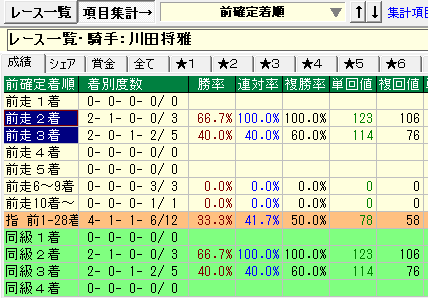 2. 川田将雅騎手牡馬で前走2〜3着馬で前走上がり1〜3位