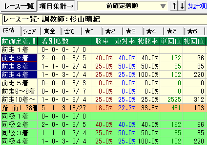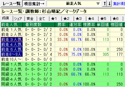 8. 杉山晴紀厩舎⇒今回小倉競馬場①前走2~4着馬②前走3~9番人気