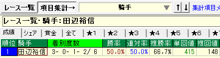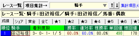 5. 田辺裕信騎手⇒牡馬①今回1~4枠②今回偶数馬番