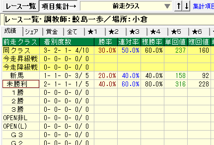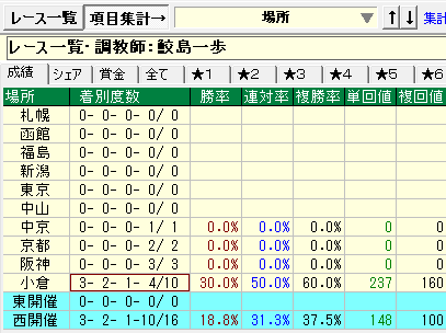 10. 鮫島一歩厩舎⇒①今回小倉競馬場②前走未勝利戦③今回芝1,200m