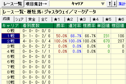 - ジャスタウェイ産駒⇒①前走着差負け0.1〜0.5②キャリア1〜2戦③今回5〜8枠