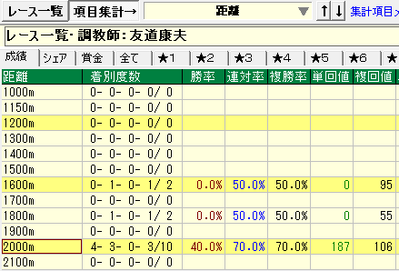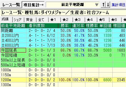 - 上記条件で今回距離1,800か2,000の成績が優秀。