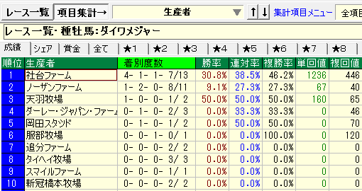 - 社台ファーム生産馬の成績が優秀。