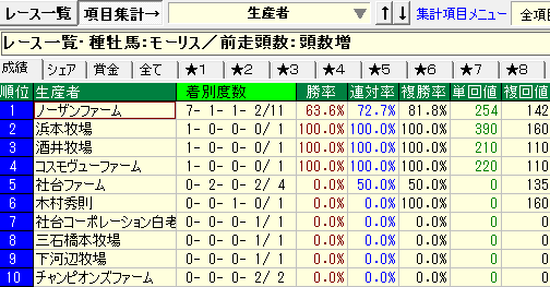 - 上記条件でノーザンファーム生産馬の成績が優秀。