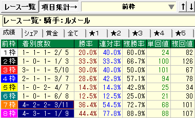 - 前走7~8枠の成績が優秀。