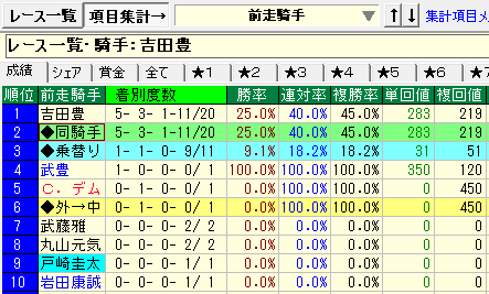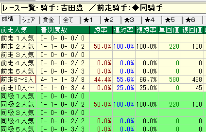 - 吉田豊騎手⇒①前走から継続騎乗②前走6〜9人気③前走8枠