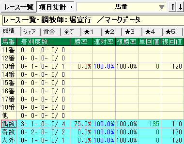- 堀厩舎⇒前走上がり1位〜3位で今回偶数馬番