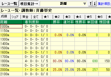 - 今回距離別成績