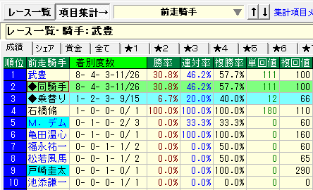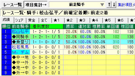 - 前走騎手別成績