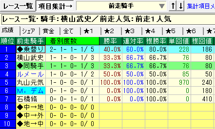 - 横山武史騎手⇒①前走1番人気②前走から乗り替わり