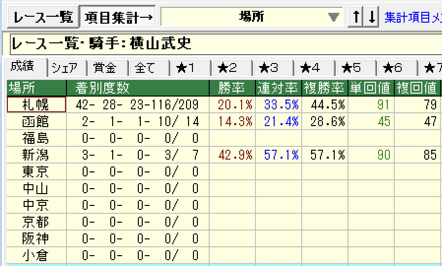 - 競馬場別成績