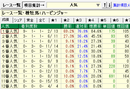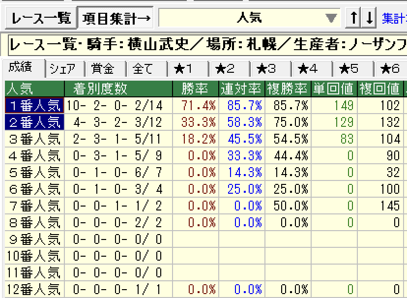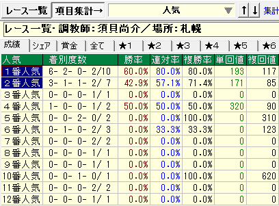 - 1番人気の成績が優秀。