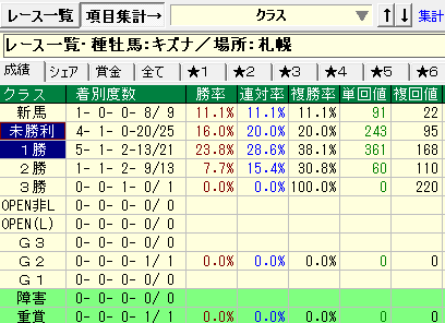 - 未勝利、1勝クラスの成績が優秀。