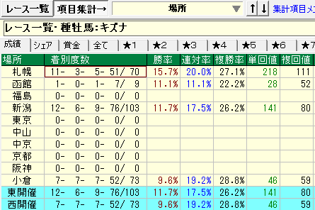 - 札幌競馬場の成績が優秀。