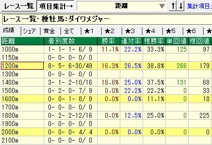 - 距離1,200mの成績が優秀。