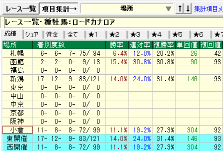 - 新潟、小倉の成績が優秀。