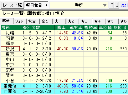 - 新潟競馬場の成績が優秀