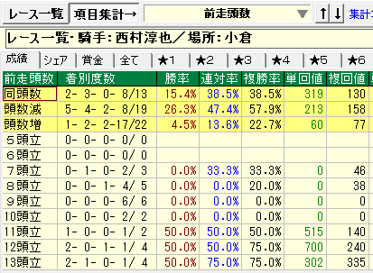 - 西村淳也騎手⇒①小倉競馬場②今回頭数減③間隔5~25週