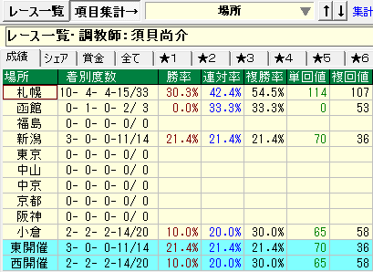 - 須貝厩舎⇒①札幌競馬場②今回1,2番人気