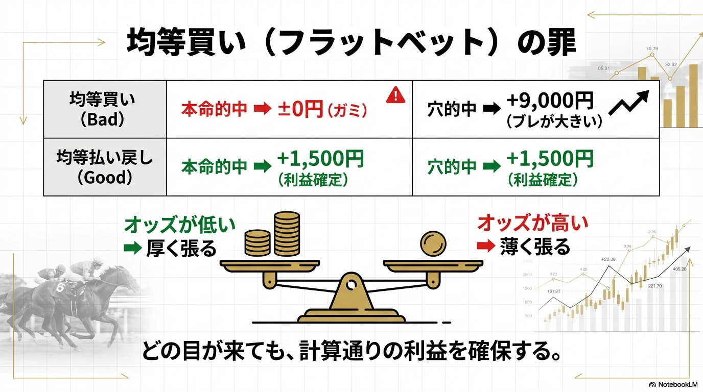さて、ここからは少しだけ「算数」の時間になります。「うわ、計算とか数字は苦手なんだよな…」と思った方も、どうかページを閉じないでくださいね。ここで解説する内容は、あなたが汗水垂らして稼いだ大切なお金を、無駄な馬券で溶かさないための「最強の防具」になる知識です。