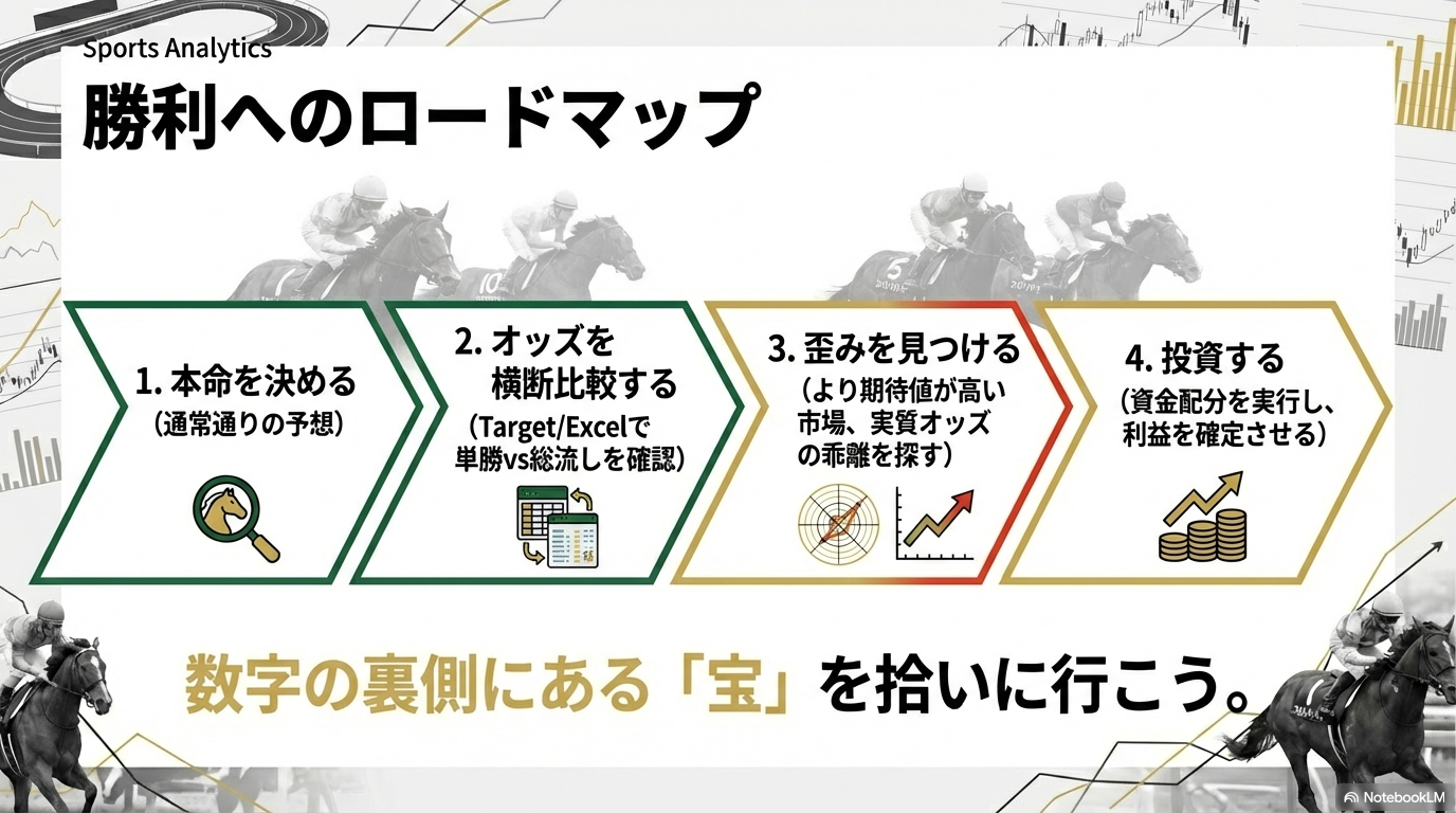 最後に、これまでの内容を総括しつつ、あなたが今週末の競馬で「勝ち組」へと変わるためのロードマップをお渡しして締めくくりたいと思います。