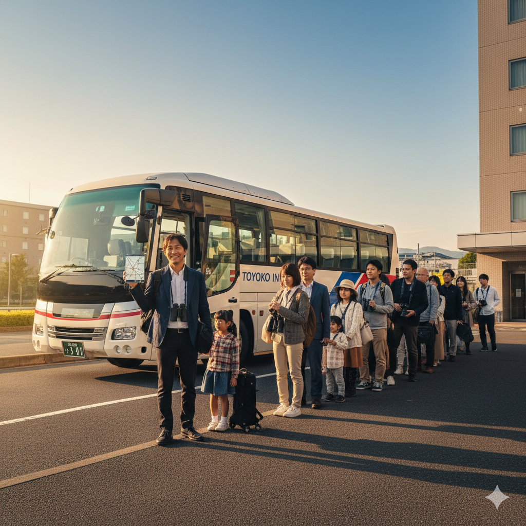 「出発時刻の5分前に行けばいいや」という甘い考えは捨ててください。特にG1当日の朝は、ロビーに長蛇の列ができます。バスに乗れなかった場合、次の便を待つか電車移動に切り替えることになり、大幅なタイムロスになります。確実に座って移動するためには、「出発時刻の15分〜20分前にはロビーに降りて待機する」ことを強くおすすめします。