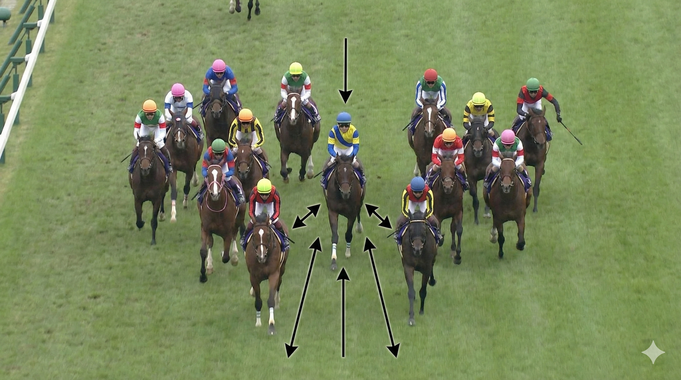 データを見ても、最も勝率が安定しているのはその中間、いわゆる「好位差し(先行〜中団)」のポジションです。なぜ極端な脚質が不利になるのか、そのメカニズムを解明しましょう。