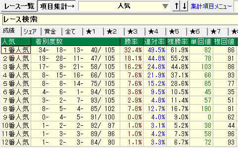 - このクラスで今回1~3人気に絞ると⇒勝率42% 連対率64% 複勝率71% 単回217 複回収135