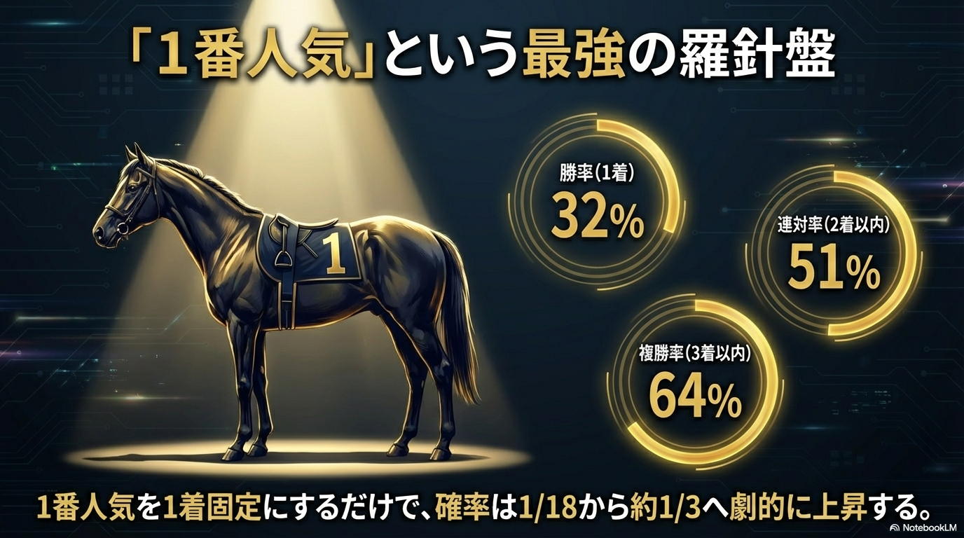 冒頭で提示した「0.02%(18頭立て)」という当選確率は、数字だけ見れば絶望的です。しかし、この数字はあくまで「目隠しをしてダーツを投げる」ように、何の根拠もなくランダムに馬券を買った場合の理論値に過ぎません。