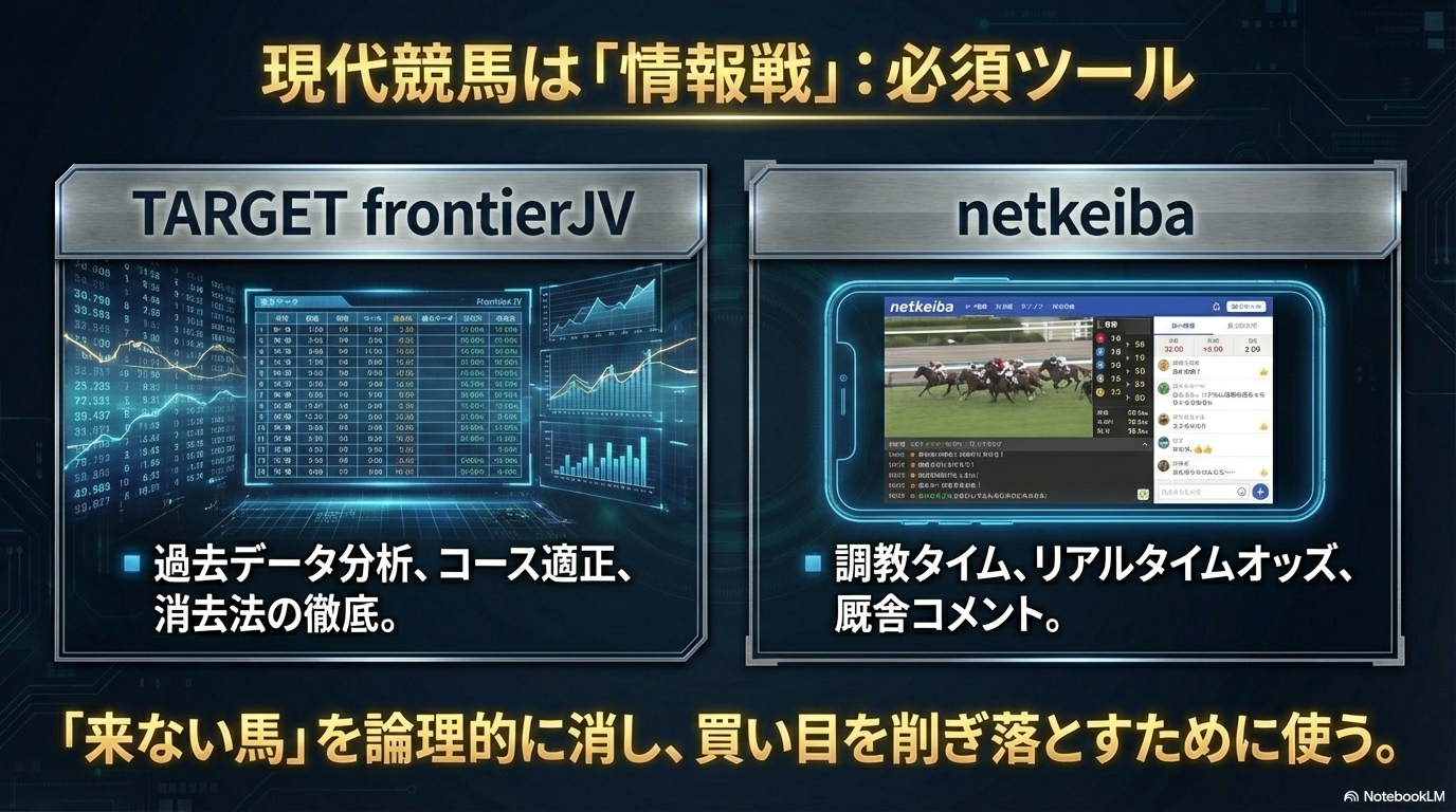 これらのツールを使う真の目的は、単に「当たる予想」に乗っかることではありません。膨大なデータの中から「来ない馬(消せる馬)」を論理的にあぶり出し、無駄な買い目を極限まで削ぎ落とすことにあります。