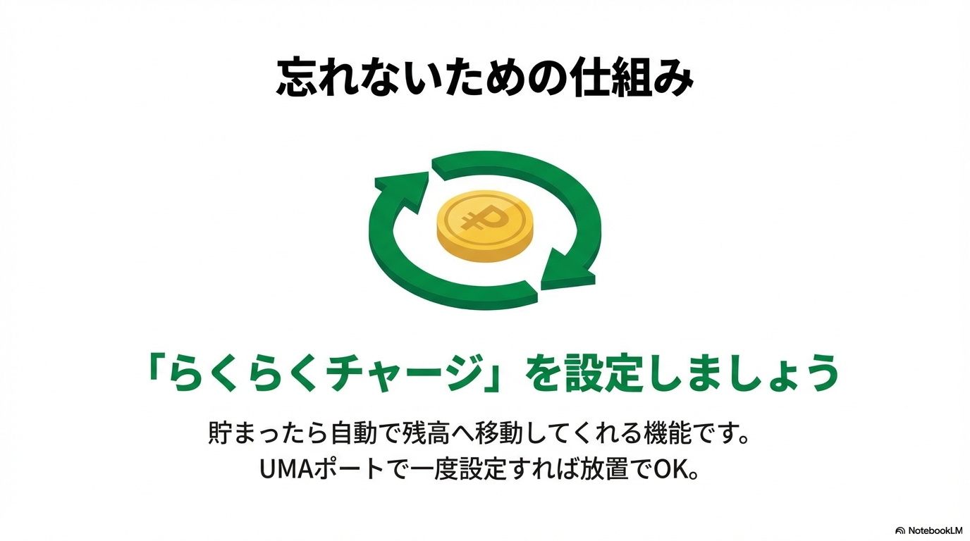 私は、自分のスマートフォンのカレンダーアプリに、毎年「6月1日」を「UMACAポイント確認デー」として登録しています。失効予定があればその週の競馬でチャージして使い切る、なければそのまま放置……というルーチンを作っておくだけで、失効のリスクはほぼゼロにできますよ。皆さんもぜひ、自分なりの「確認習慣」を作ってみてくださいね。