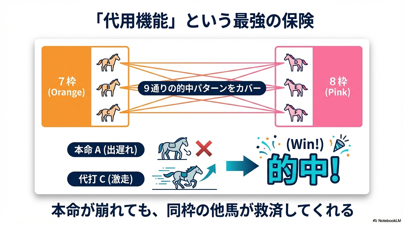 こんな悲劇を避けるために、枠連特有の「代用」という概念と、具体的なリスク回避術について深掘りして解説します。