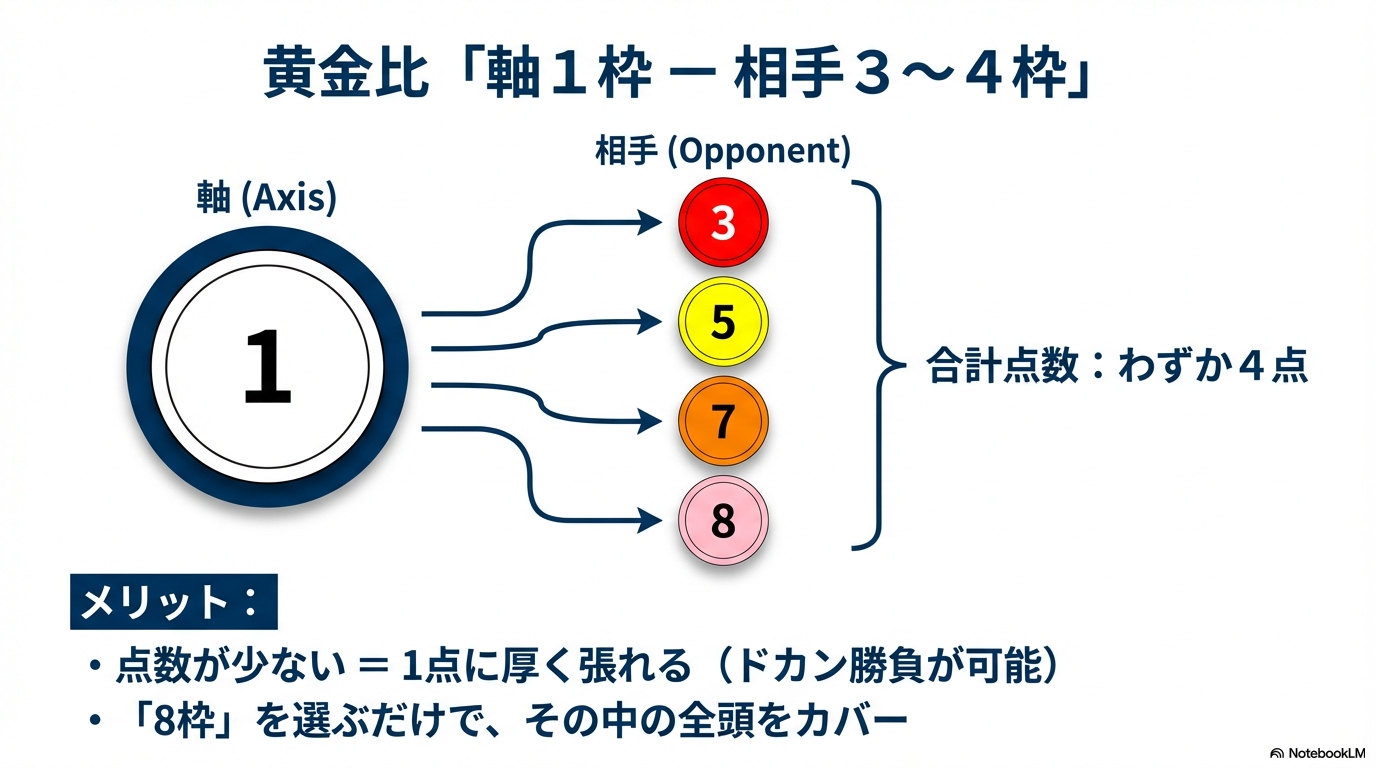 | 標準型 | 軸:1枠 相手:3〜4枠 |