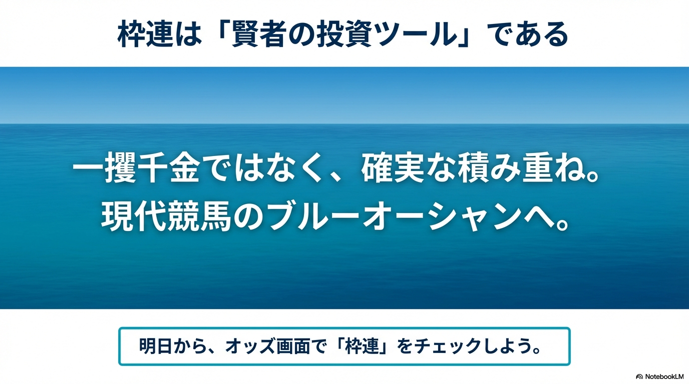 ここまで、少しマニアックとも言える「枠連」の世界について、その構造的な魅力から実践的な戦略まで解説してきましたが、いかがでしたでしょうか。