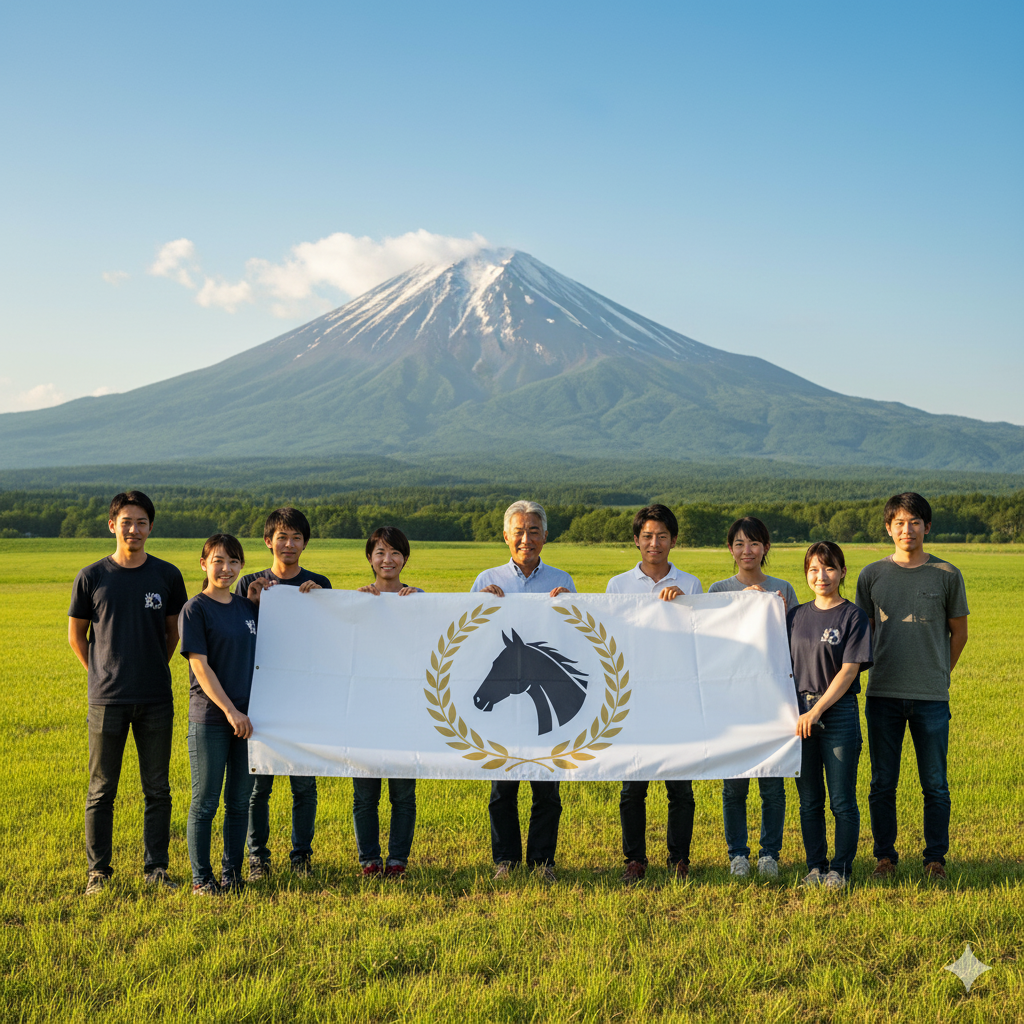 栗東トレーニングセンターだけでなく、北海道の外厩施設や、その地域の商工会 といったチーム全体、まさに「厩舎力」 で喜びを共有している様子が、この一枚の写真から伝わってきました。